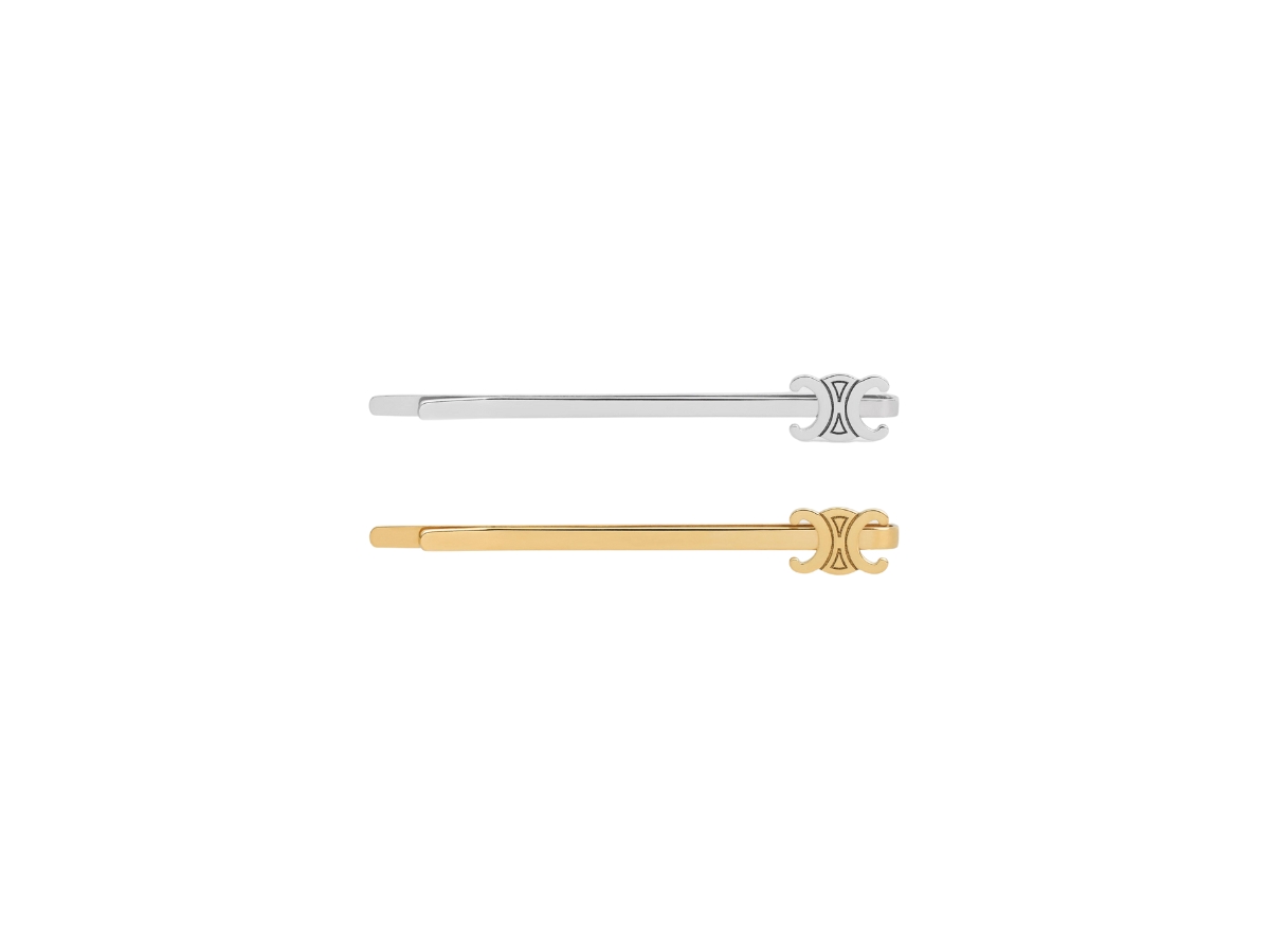 Celine Hair Accessories Set of 2 Triomphe Snap Hair Clips in Brass with Gold Finish and Steel Gold