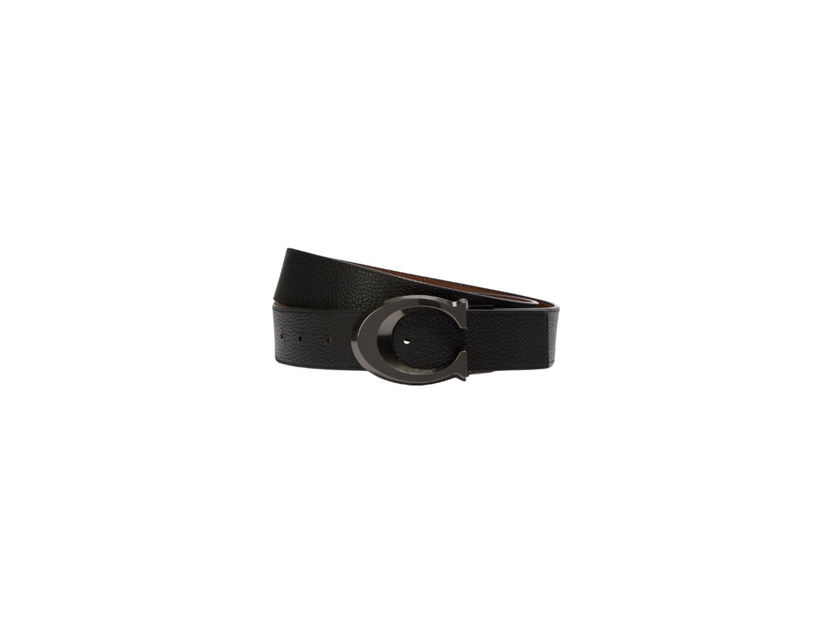 Coach Harness Buckle Cut To Size Reversible Belt 38 MM Gunmetal Charcoal Black