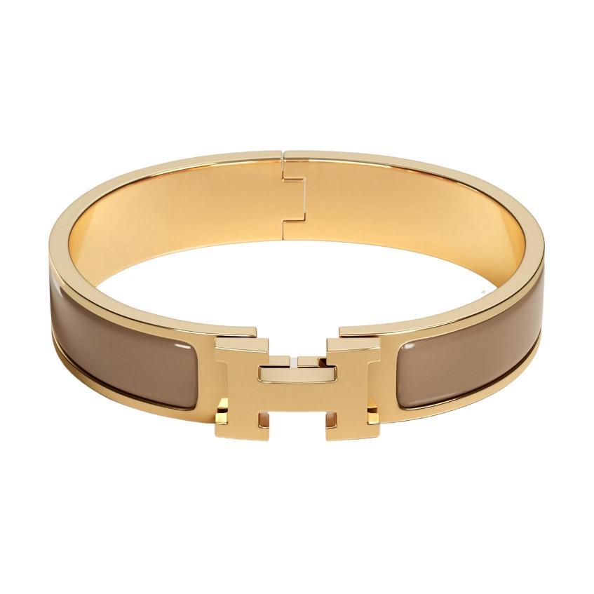 Hermes Collier De Chien Bracelet Noir Gold-Plated