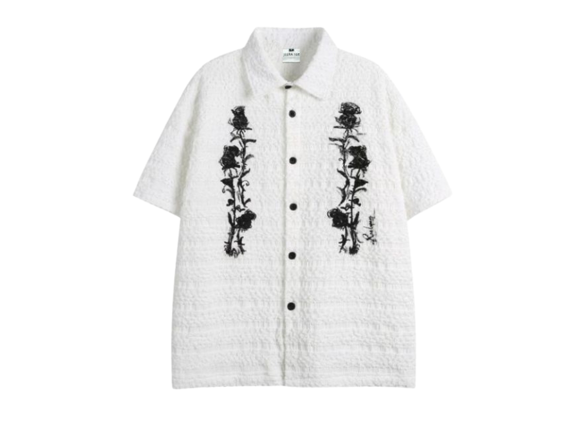 Unisex short-sleeved shirt with a dark rose pattern.Cotton fabric (Cotton), soft fabric, comfortable to wear, not hot fabric.The rose-decorated details add a chic, chic look that's very unique to this model.Easy to mix & match, unisex, can be decorated in many styles.