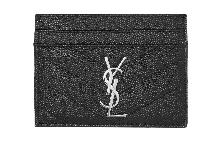 Saint Laurent Cassandre Matelasse Card Case In Grain De Poudre Embossed Leather With Silver-Toned Hardware Black