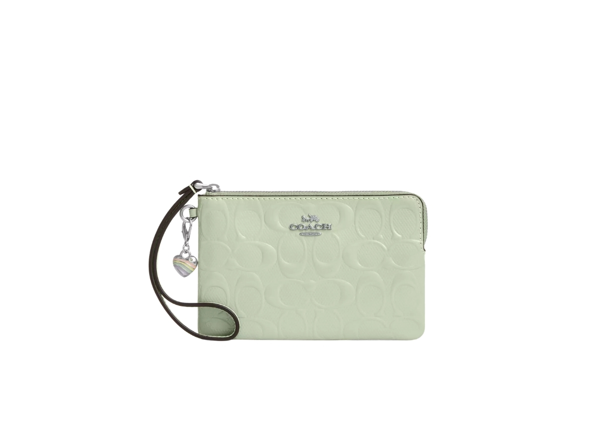 Coach Corner Zip Canvas With Leather Coin Purse Mahjong Bag Clutch Women's Brown