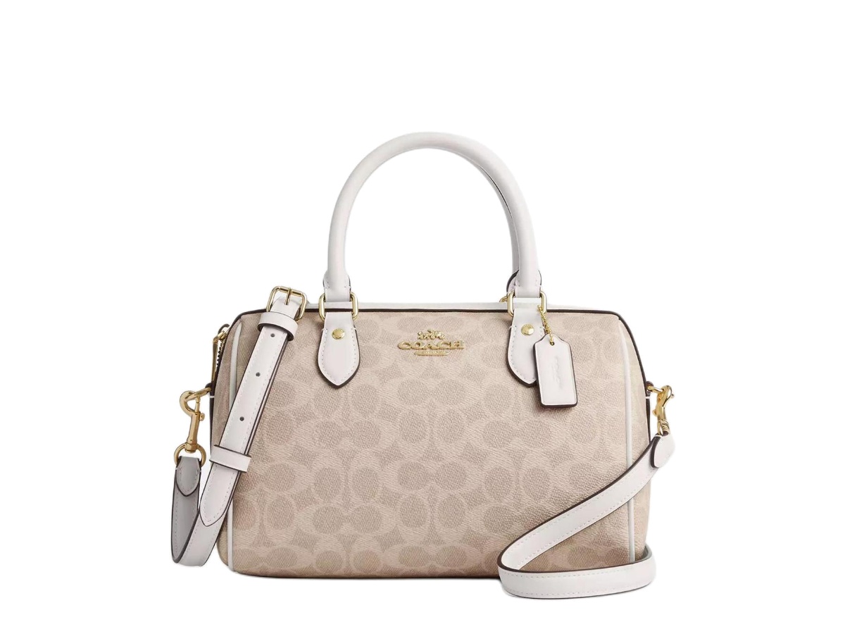 Coach Corner Zip Canvas With Leather Coin Purse Mahjong Bag Clutch Women's Brown