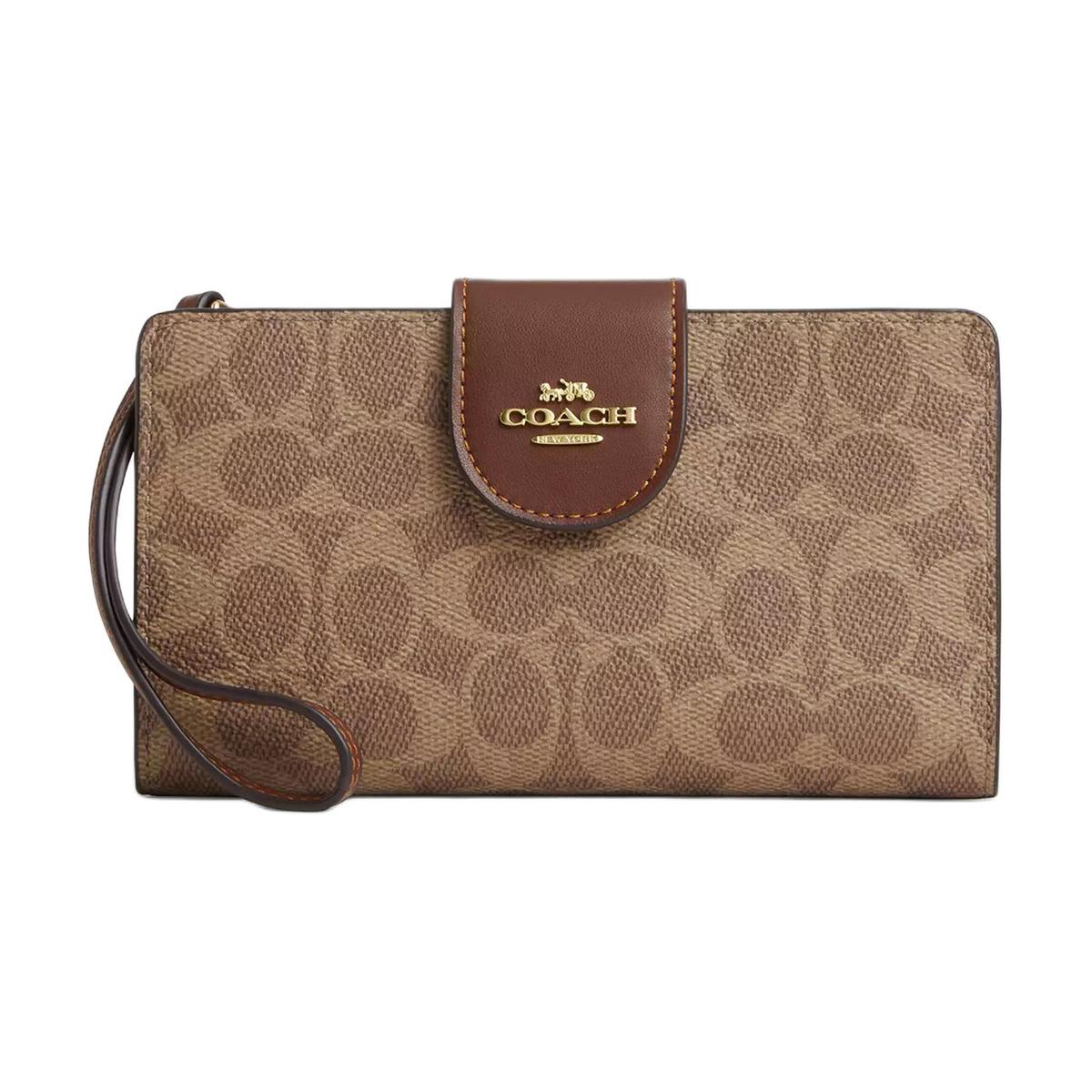 Coach Snap Wallet In Signature Leather With Gold Tone Hardware Black